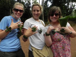 The spice tour was just amazing! We saw cardamom, cloves, lemongrass, cinnamon (did you know cinnamon root smells just like Vick‘s Vapor Rub?), curry tree, pepper vine (apparently all varieties of pepper are from the same plant, but are harvested and prepared differently), jack fruit, bread fruit, yummy star fruit, nutmeg, some plant that the leaves are used to make lipstick locally, among many others! Throughout the tour our guides showed amazing dexterity and skill, creating bracelets, rings, neck ties, and frogs for us – all out of banana leaves! At the end of the tour, we got to try a bunch of different kinds of fruits, many of which we do not have in the U.S.A. including custard apple, a fruit that looked just like litchi fruit, but was not litchi, HUGE grapefruit (and the best tasting grapefruit I have ever had), some kind of fruit that tasted sort of like a cross between a banana and a pineapple, and several others.